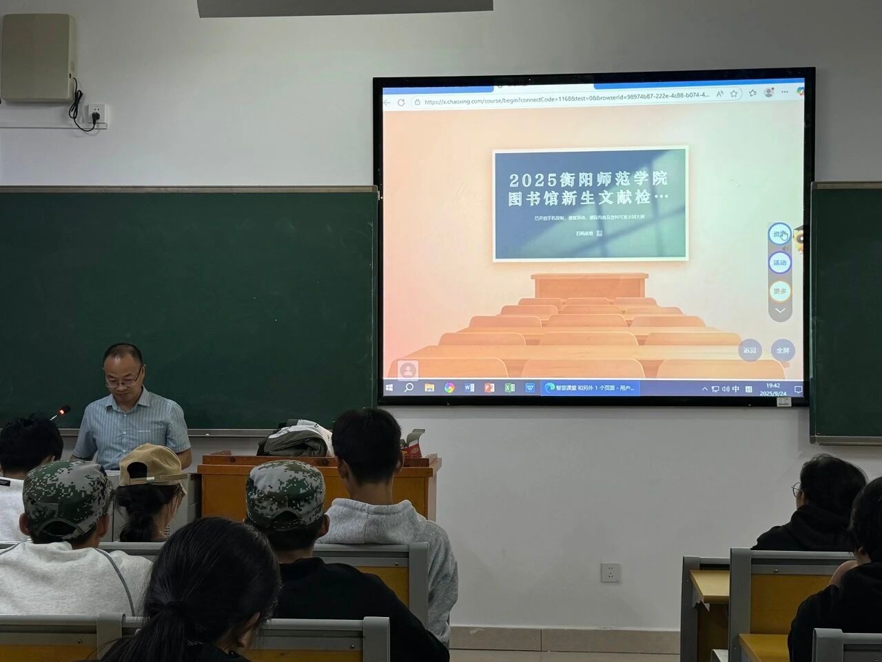 为帮助2025级新生提高文献信息检索能力,充分有效地利用学校图书馆资源,9月24日下午,我院分别在仁智楼A309、星瀚楼南106等多个教室同步开展2025级新生文献检索培训讲座。讲座由衡阳师范学院图书馆李友良、李梅、宋俊龙、石彩英四名老师主讲,2025级全体新生参加。