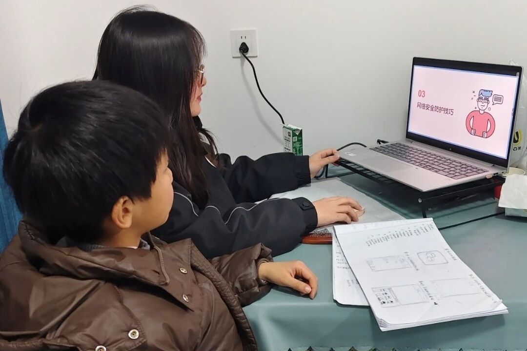志愿者为乡村儿童提供在线学习辅导,以及如何利用智能手机进行资料查询、课程学习,并搭建他们与外出务工父母的亲情沟通桥梁,同时开展网络安全与防沉迷教育。