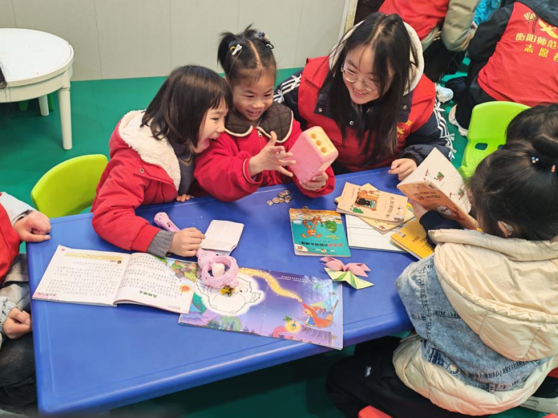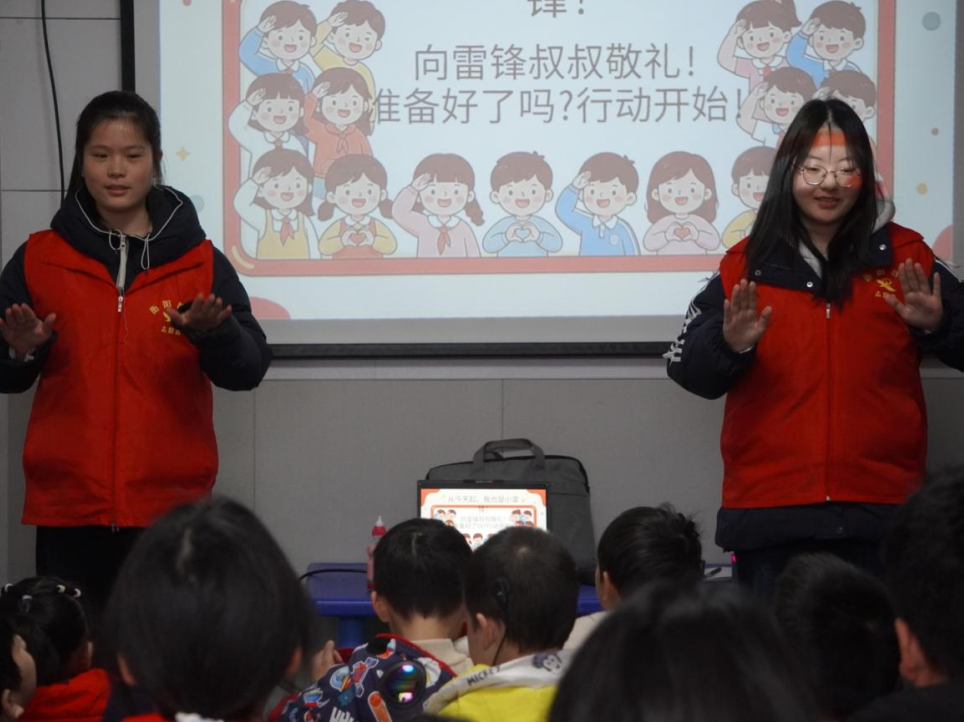 活动当天,学生党员提前抵达现场布置教具,以饱满的精神状态迎接孩子们的到来。面对听障儿童这一特殊群体,志愿者们以手语致以问候,借助趣味游戏打破隔阂、建立信任。在核心教学环节,党员们运用多媒体动画、绘本阅读与手语翻译相结合的创新模式,向孩子们生动再现雷锋助人为乐的经典故事。随后,志愿者带领孩子们共同演绎以感恩与友爱为主题的手势舞蹈,在律动中培养节奏感,在互动中增强表达自信。整场活动贯穿“陪伴式服务”理念,党员们始终与孩子们保持平视交流,以耐心与尊重传递关怀,让党的温暖触达每一个无声的心灵。