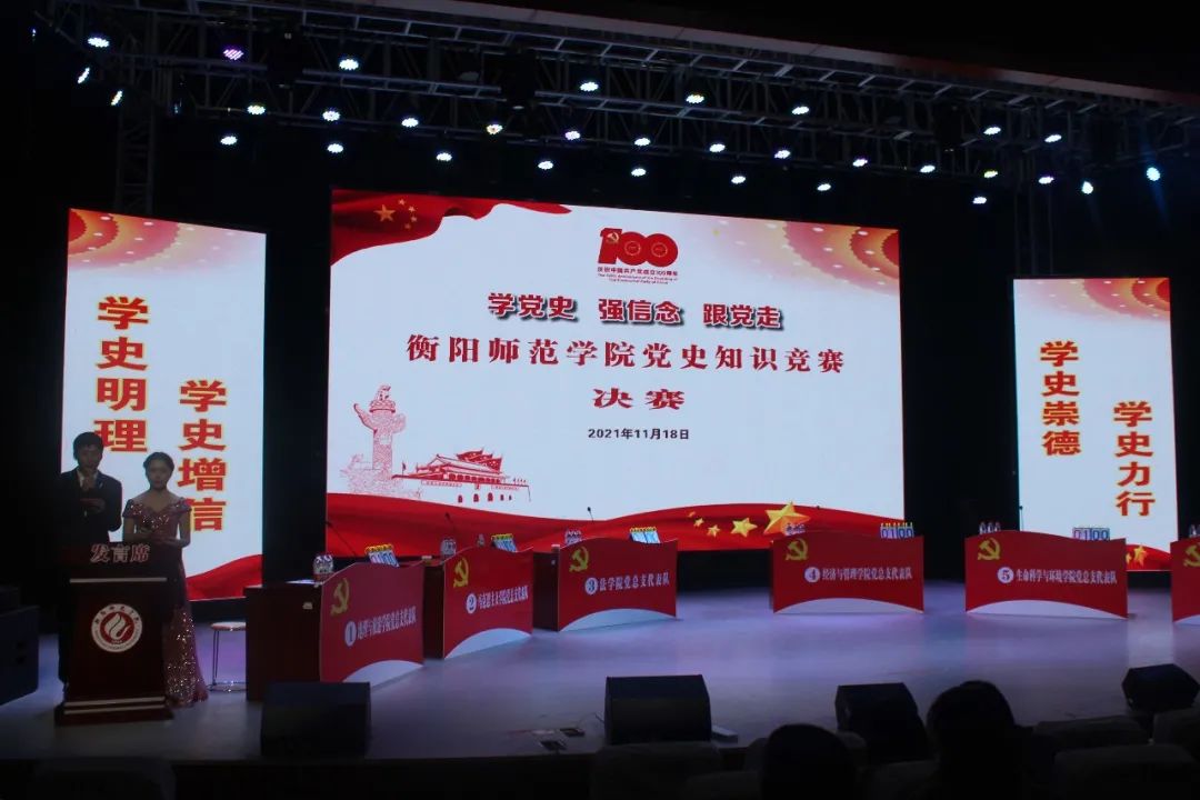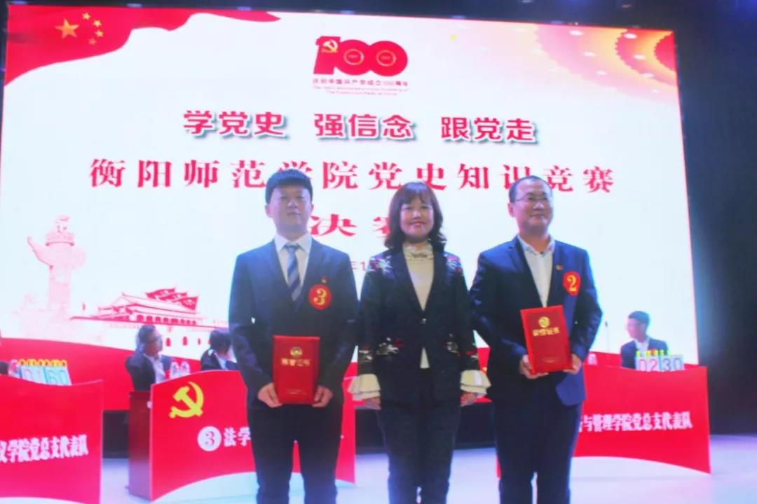 为迎接中国共产党百年华诞,回顾党的光辉历程,营造学党史、强信念、跟党走的浓厚氛围,由我院党务专干李湘龙老师带队的4号队伍经济与管理学院党总支代表队经过激烈角逐后,于2021年11月18日晚19:30,参与了以“学史明理,学党增信,学史崇德,学史力行”为主题的衡师党史知识竞赛决赛。