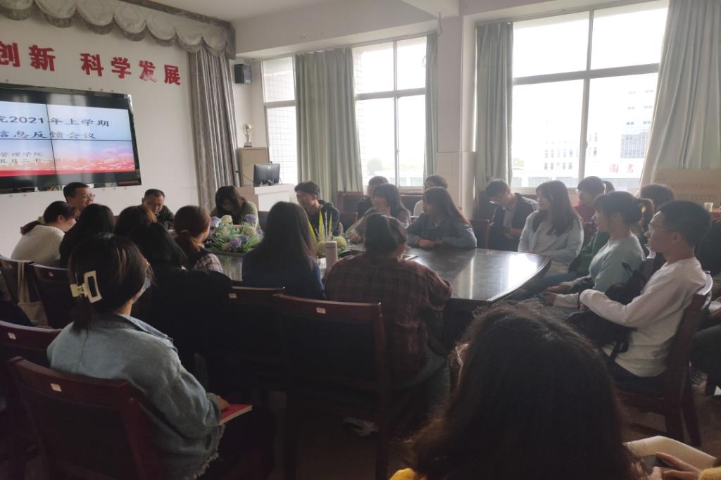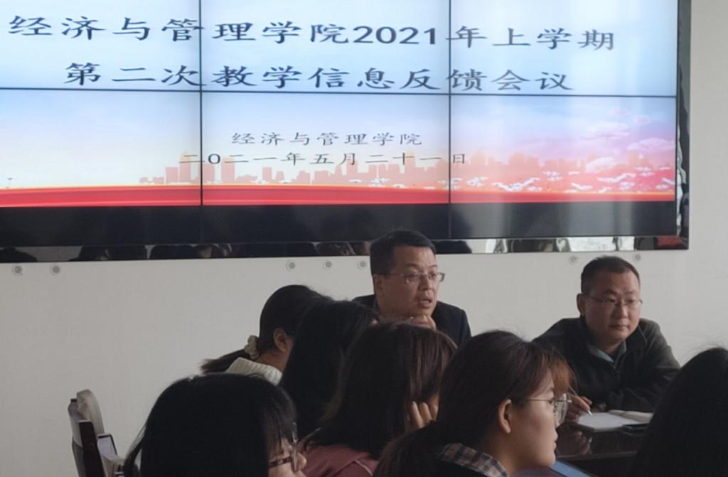 为了解我院学生在课程教授和学风学情方面的问题与建议,经济与管理学院于2021年5月21日中午13:00在文科楼C栋五楼会议室召开2021年上学期第二次教学信息反馈会议。经济与管理学院副院长屈瑜君、辅导员李湘龙老师、教务秘书水丽蓉老师、学生分会学习部部长谢琼、副部长云树芷、副部长陈林竹以及2018--2020级各班学习委员参与了此次会议。