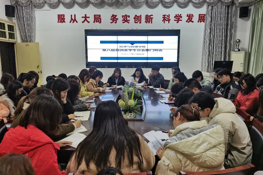 为加强各部门之间的交流与学习,使各部门的工作有序进行,我院于3月5日下午18:30于文综楼C栋504召开了经济与管理学院第八届分团委学生分会本学期第一次部门例会。此次会议由学生分会执行主席易春艳主持,第八届分团委学生分会部分学生干部参加了本次会议。