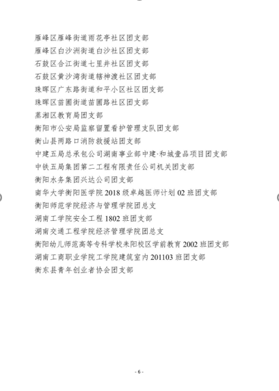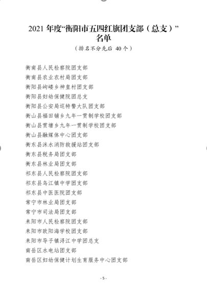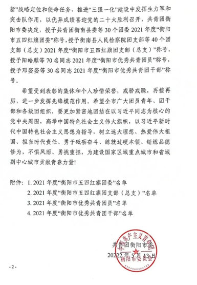 《关于表彰2021年度“衡阳市五四红旗团委”“衡阳市五四红旗团支部(总支)”“衡阳市优秀共青团员”“衡阳市优秀共青团干部”的决定》