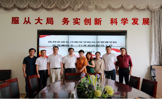6月2日下午,长沙师范学院经济管理学院院长伍海琳、副院长李红娟、财务管理教研室主任刘靖宇、实验室中心主任张远康等一行来我院考察交流。